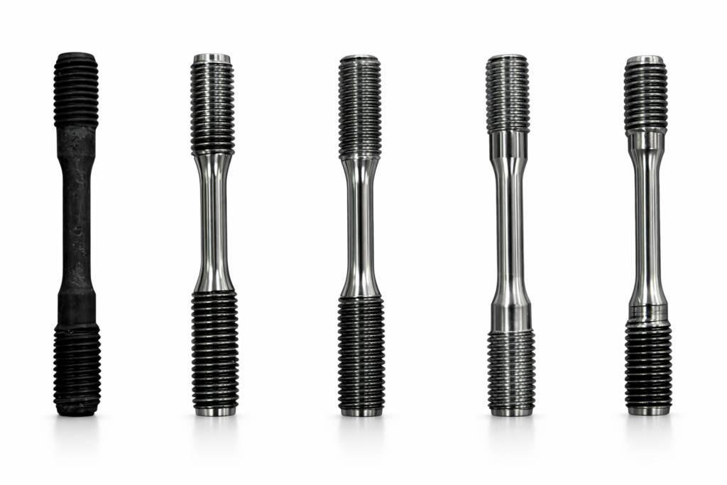Fatigue testing specimens are machined with precision following industry standards such as: