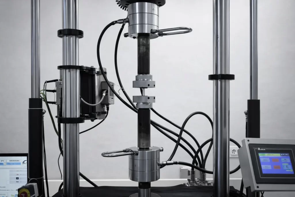 Self-aligning grips adjust to ensure that the load is applied uniformly along the specimen’s axis, preventing stress concentrations and inaccurate results.