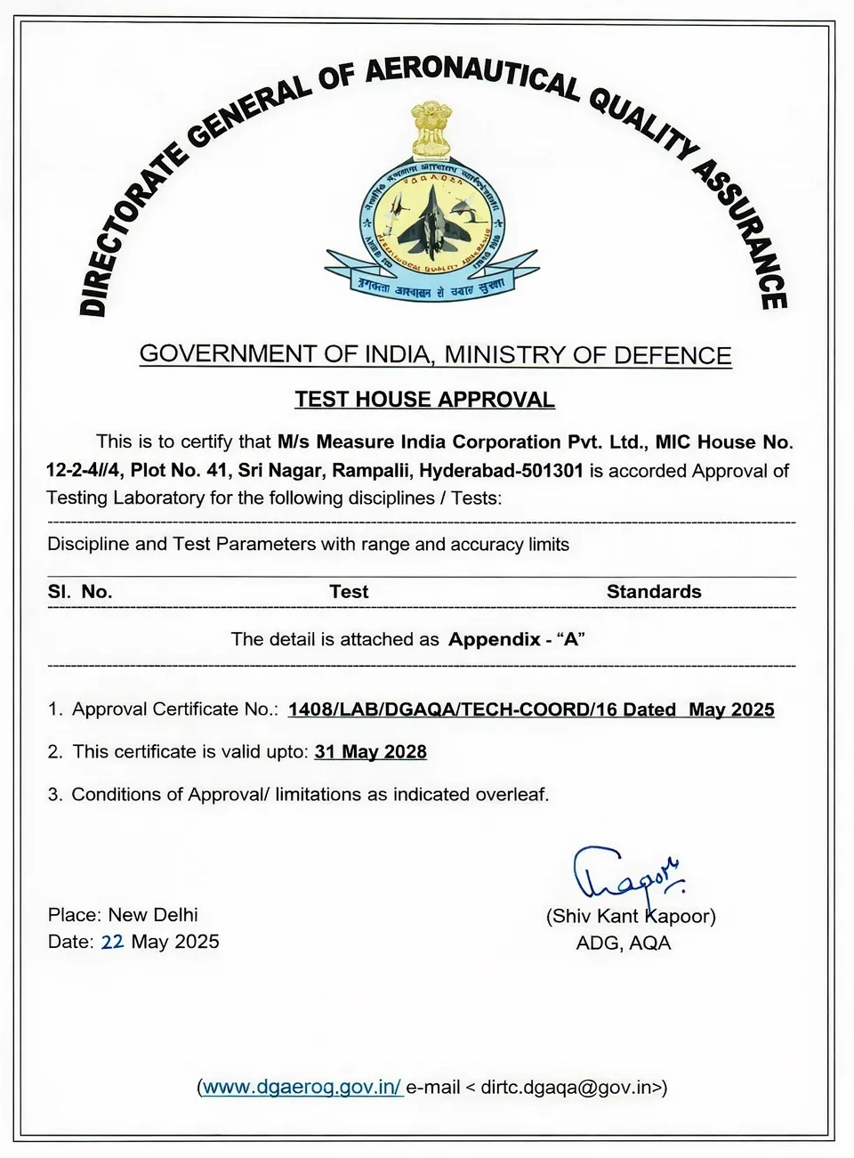 MIC Labs is approved by DGAQA, ensuring compliance with aerospace and defense testing requirements.