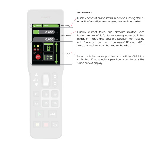 9.2. Fine Position (rotate) : Rotate the wheel to adjust crosshead position, direction of rotation decides crosshead direction, and speed can be set in software.