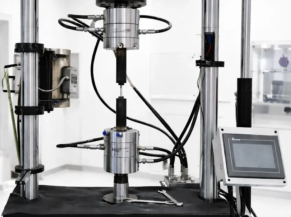 Various types of gripping systems are used based on the specimen’s shape, material, and test conditions. Threaded grips are commonly used for cylindrical specimens, where external or internal threads allow secure fastening. Collet grips provide uniform clamping force around the specimen and reduce stress concentration. Hydraulic grips use pressurized oil or air to apply a consistent gripping force, making them suitable for high-precision tests. Wedge grips have a self-tightening mechanism that ensures a firm hold, mainly used for flat or rectangular specimens. Pin-loaded grips involve inserting pins through holes in the specimen, minimizing stress concentration and ensuring stable loading.
